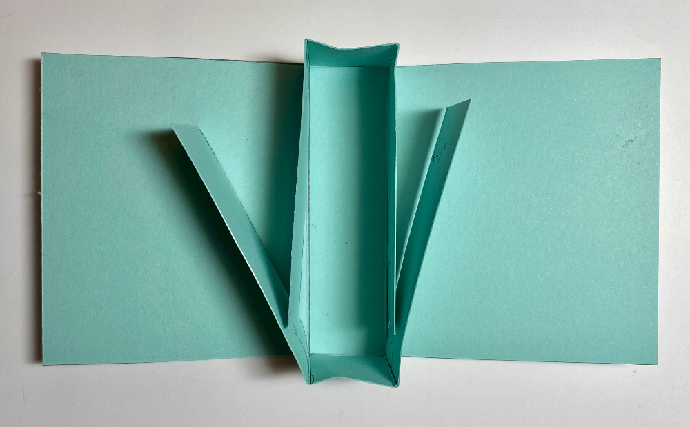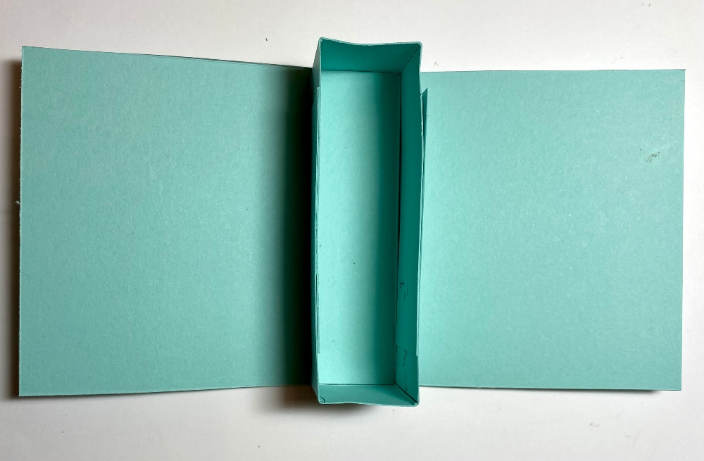 In the photo above, you can see how those side flaps fold inward and make the little inside box to hold the candy. I adhered the flaps together to make the box, being careful where one side was shorter than the other, not to get glue past where it will be exposed. OR you can glue these flaps to the front and back sides of the treat box. I did it the way I did it, but realized I could have done it the other way, too. You will see when you assemble it!