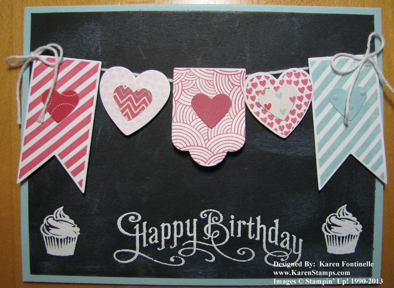 Some of us can’t seem to get enough of the chalkboard technique! Here is a birthday card using a banner and the chalkboard technique!