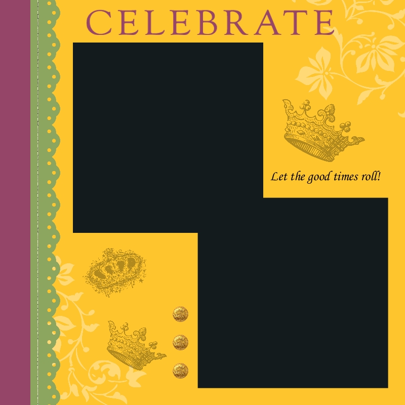 So if you were lucky enough to celebrate Mardi Gras, perhaps you would like to scrap your photos! There is no faster way than to use My Digital Studio from Stampin’ Up! To make the page pictured above, I just started with a template, changed the color of the background paper and the punches along the side, added a photo box, added the crown “stamps” (known as brushes) and added a little text.