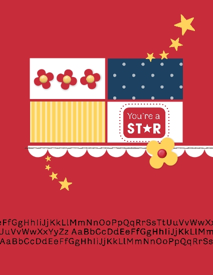 It's so easy to just play around with My Digital Studio. I just picked a design that was already made and then changed the colors of the background paper, the colors of the rectangles, the colors of the flowers and brads, changed the greeting, added some stars and the alphabet and I had a little "back to school" card. That might sound like a lot, but I didn't have to think about a design and just a few clicks changes colors or embellishments.