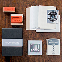 Be sure to check out this interesting stamp kit for your man! (And probably you would even like using it, too!) It was designed by men for use by men! It includes everything the man in your life will need for stamping a few manly cards all wrapped up in a nice box (which you will probably want to save for yourself!).