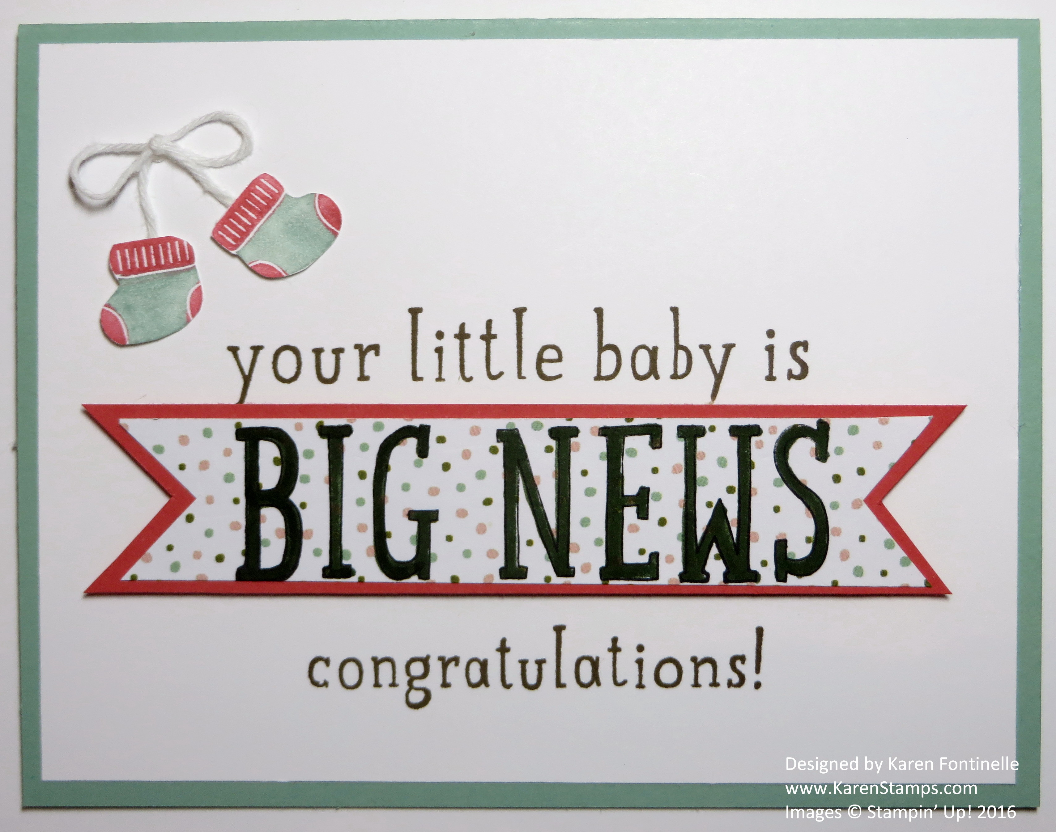 Make a Big News baby card for that new arrival with the Big News Stamp Set! It’s on the Stampin’ Up! retiring list so you only have a few weeks to order it. But this stamp set is not just for babies, it has greetings for several life events, such as birthdays and weddings, as well as good old “awesomeness”!