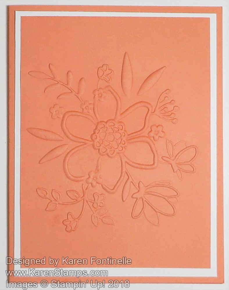 The card base is Bermuda Bay Cardstock. I wrapped the Whisper White 1/4″ Organza Ribbon around the designer paper three times. I had thought I would tie a piece of ribbon in a knot on each side of the greeting, but once I had the ribbon tied around, I liked it just that way. You are allowed to change your mind while you are stamping! This ribbon is on the Last Chance List so if you like it and need it, better order it!