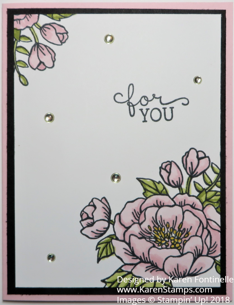 If you are new and interested in Stampin’ Up! products and would like a complimentary copy of the new catalog, please contact me with your name and mailing information at Karen@Karenstamps.com. I would be happy to be your Demonstrator to answer any questions or help in any way!
