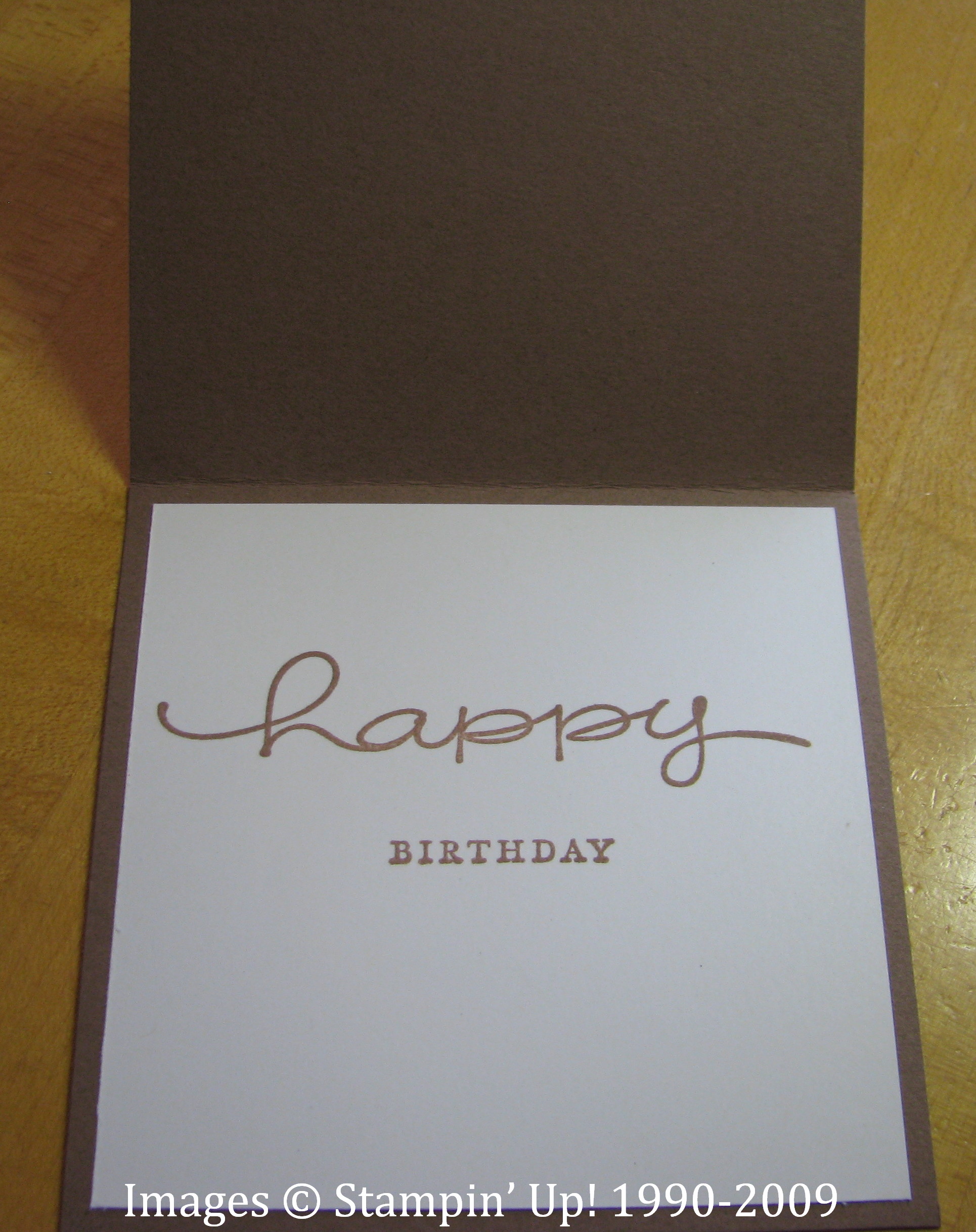 And for the inside, just a Whisper White cardstock layer against the dark Close to Cocoa card stamped with the "Happy Everything" stamp set.