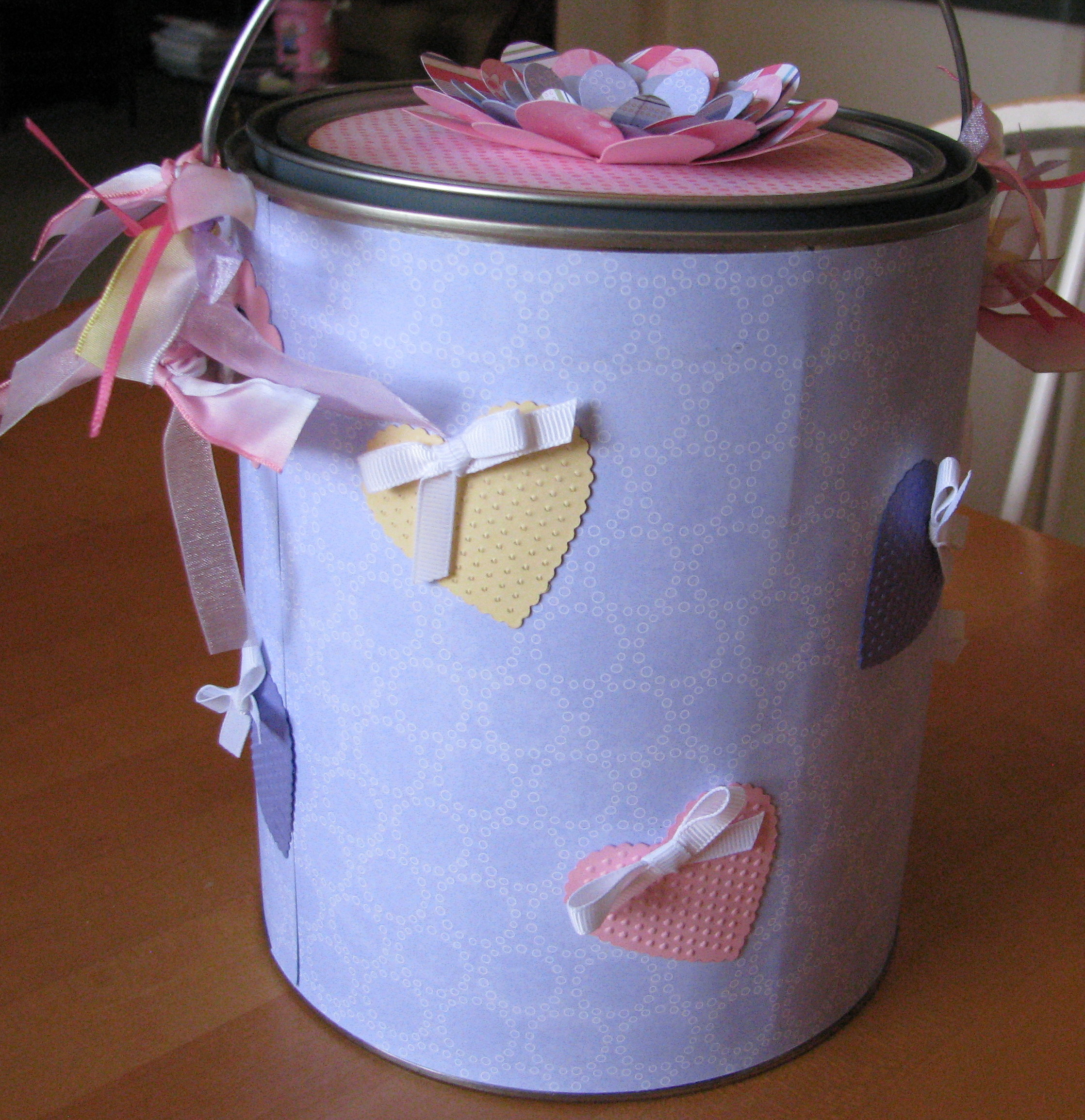 This really is a fun project, once you get the paper on the can VERY SIMPLE to decorate to any theme, and plenty of room for a gift inside. Try it!! Let me know if you have questions!