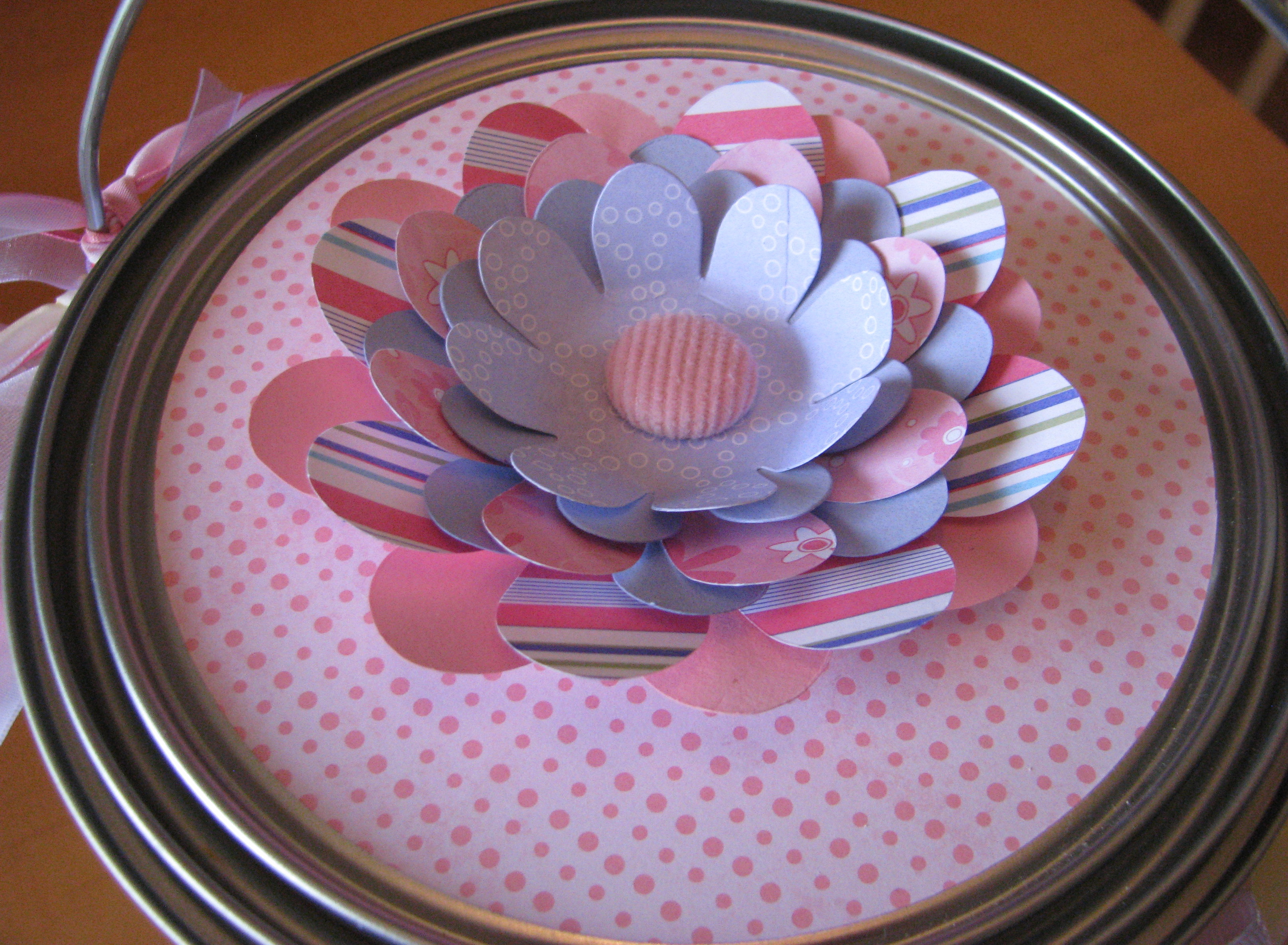 The other day I showed you some Build-A-Bear gals I had made. Well, they were going on the sides of gallon paint cans that I decorated as a gift container. It is so much fun to use the Big Shot (#113439) and an assortment of dies to do projects like this! Be sure to check pages 194-202 in the current Stampin' UP! Idea Book & Catalog for information on all the Big Shot products as well as in the mini catalogs.