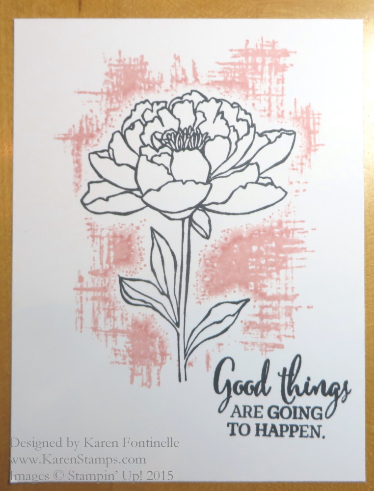 In the Sunday paper, I read an article about how coloring for adults is really a craze right now. Apparently there are all kinds of coloring books for grown-ups out there. The author described coloring as “transporting” because she was just concentrating on the page and what she was doing, not her worries and problems. While that is nice, we stampers have known that for a long time! When we sit down and stamp a card or project or get together in a class with other stampers, life tends to take a backseat and we can relax and just enjoy the creative experience. We often call it stamping therapy or say that all our stamping supplies are “cheaper than therapy”! We don’t even need to spend money on coloring books for grown-ups because we can just stamp an outline image, such as this flower from the You’ve Got This Stamp Set, and be “transported” while we color away!