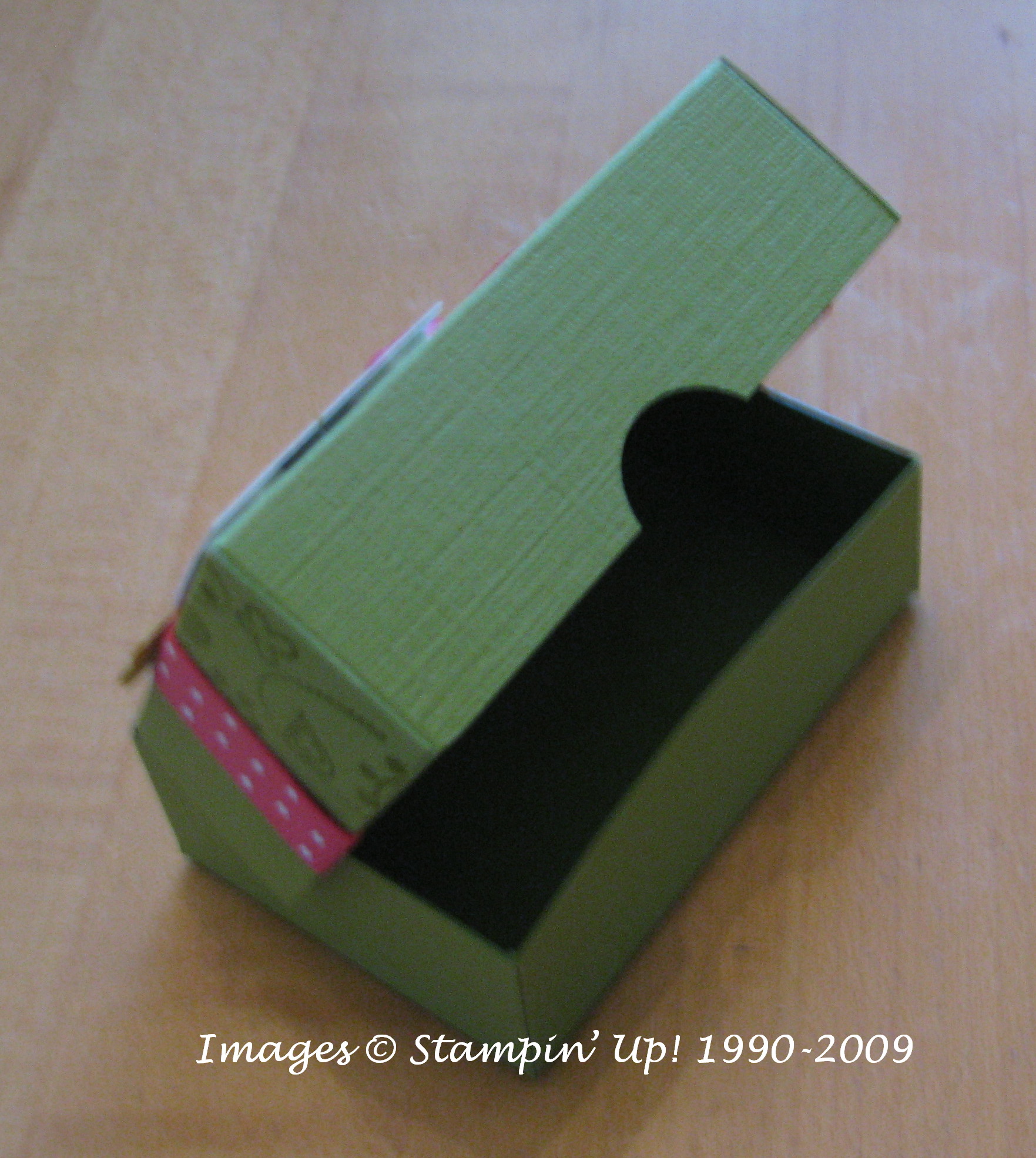 Cute, cute little box! Just two scored pieces of cardstock, glue one flap onto the bottom so it opens.