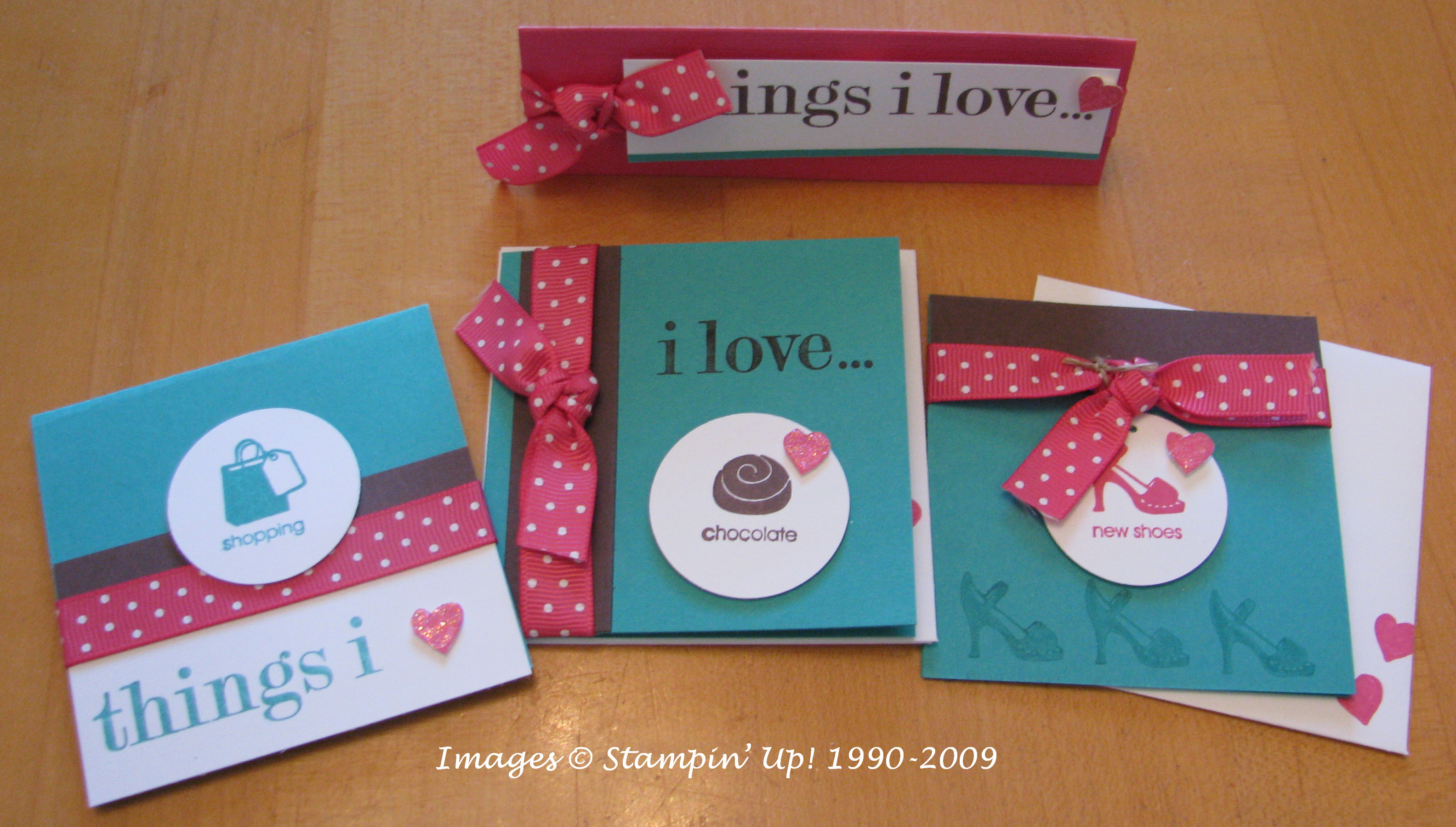 We got lots of Make & Take projects at Convention plus the four stamp sets and a wheel to do them with! I'm sure everyone loved getting so many things to stamp, but it was a little too much to do in the time allotted. However, I didn't mind because after stamping a couple of things, I opted to just save mine to do at home…..and instead I went to stand in line for Memento Mall to open so I could buy my Stampin' Up! Bear!! So I had the best of both worlds! The stamp sets we received were: