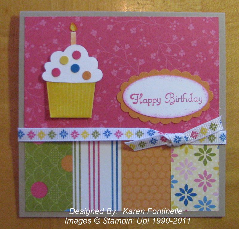 The cupcake is of course punched with the Build a Cupcake Punch #121807 in the Occasions 2011 Mini Catalog. Really a fun card to make!