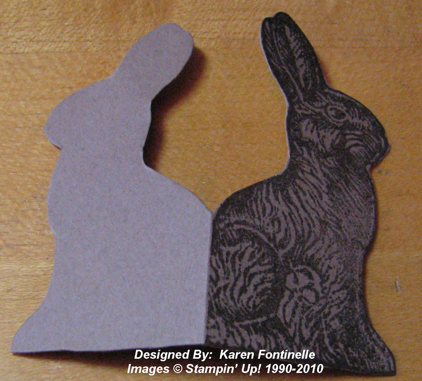 Cut out around the shape of the bunny leaving the fold intact. This is what the little bunny card looks like opened. I love using my Paper Snips (#103579) for cutting like this. Believe me, they are a great investment!
