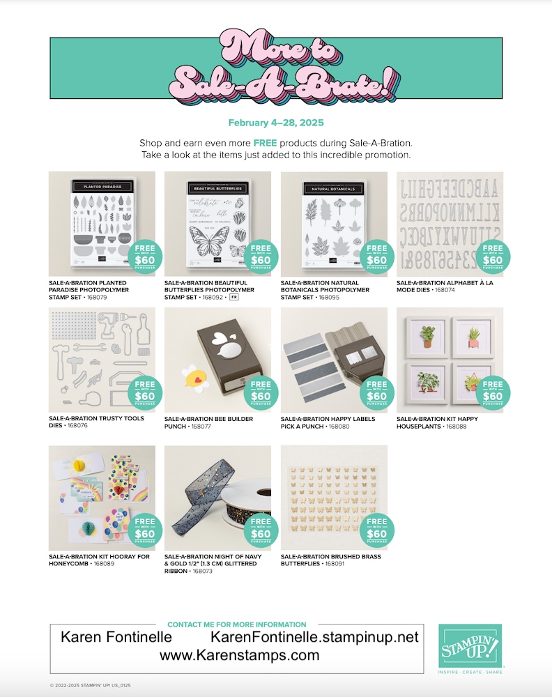 Besides the fun of being a part of Stampin’ Up! and meeting new people through stamping, you get early peeks at new products and catalogs with the opportunity to preorder those products to get samples ready to show your customers. Your Demonstrator discount will begin immediately once you get your Demonstrator number in an email after you order your Starter Kit. You get to choose what products you want in your Starter Kit, so even if you already have Stampin’ Up! products, you get to make your own choices of products so you won’t receive duplicates. You’ll get catalogs to share with friends. And worth almost as much as the Starter Kit is the FREE admission to the virtual OnStage 2023 event that you can watch from home and enjoy stamping demonstrations and see new products! It’s all good!