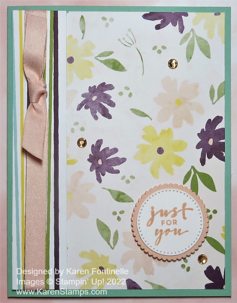 The other day I was looking through my designer paper and realized I hadn’t really used this Design A Daydream Designer Series Paper very much and it is actually quite a pretty and interesting package of papers! I thought for the next card I was going to make, I would just make something simple and easy with this paper and this Design a Daydream Just For You Card is what turned out!