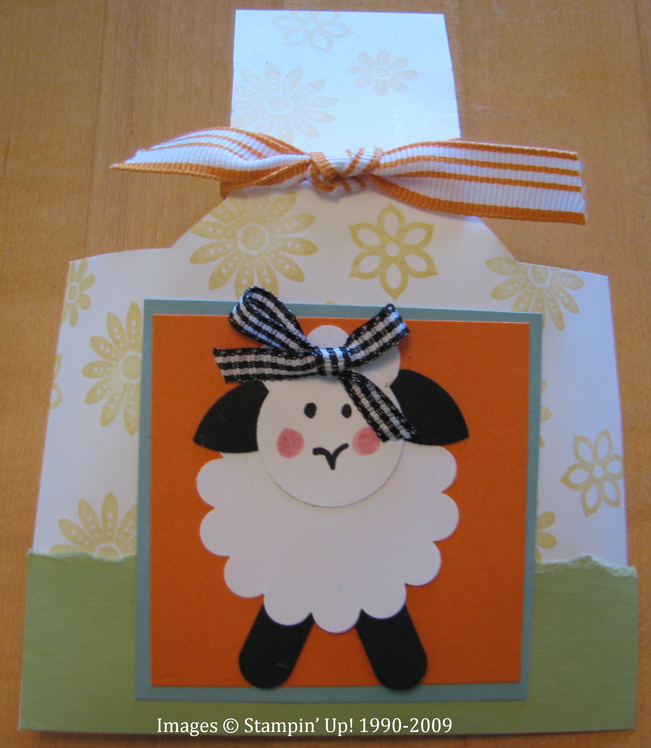 This punched lamb is inspired by MariLynn on Splitcoast. Again, I wasn't exactly sure how hers was made but this is close. It's just fun to play with the punches! The body is the Scallop Circle punch, the legs the Word Window Punch, the ears part of the 5-Petal Flower Punch. The face is just drawn on.