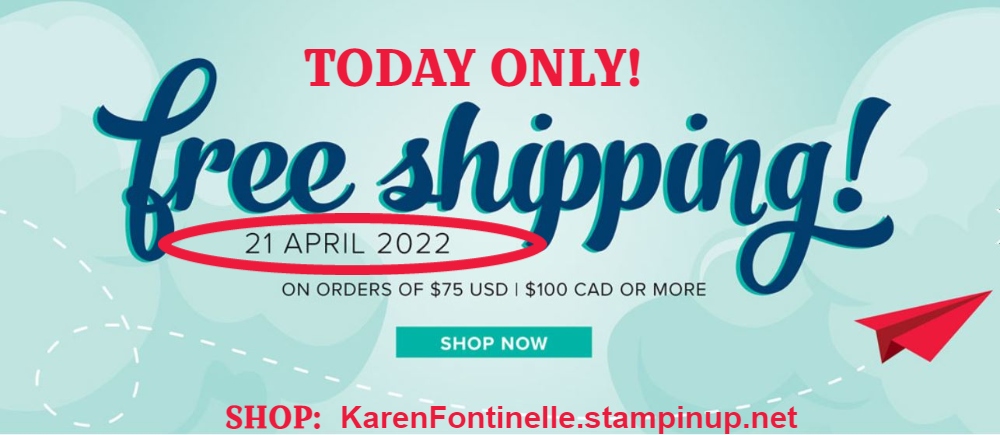 Today, Thursday, April 21, Stampin’ Up! is offering FREE SHIPPING
