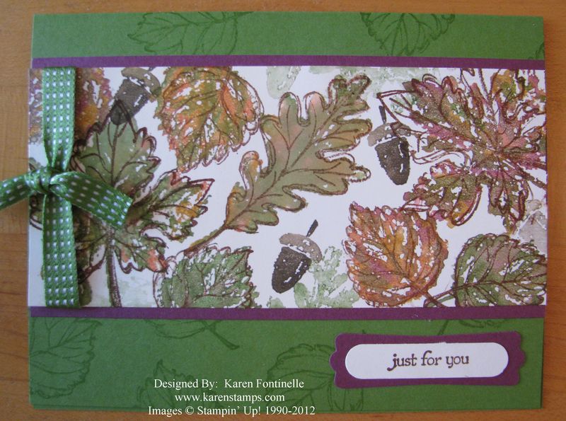 It's fall so lets start enjoying the colors and the mood of autumn! The Stampin' Up! Holiday Catalog also has many stamp and paper choices as well as inspiration to get you in a fall-ish mood! If you need a Holiday Catalog, just email me at Karen@KarenStamps.com