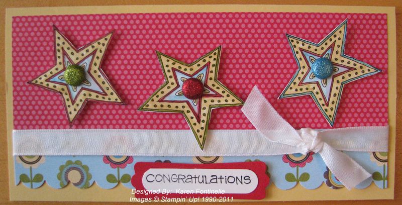 It certainly is graduation time, and here is one card I made with the Labels Collection Framelits Die. I've been pulling out a lot of retired stamps and paper for just the right things I needed for this graduation project. This "Happy Graduation" stamp is one of the a la carte ones we had called "Happy Grad". If you don't own the stamp, you can purchase the download in My Digital Studio and print it out! I just did that with a few other graduation projects going on with another graduation stamp brush set! The background is embossed with the polka dot embossing folder on the Big Shot, and I also used the Big Shot to cut out the letters. I love the Antique Brads on this card! The paper is Shimmery White…perhaps if you click on the photo to enlarge it you will be able to notice the shimmer! Love that paper!