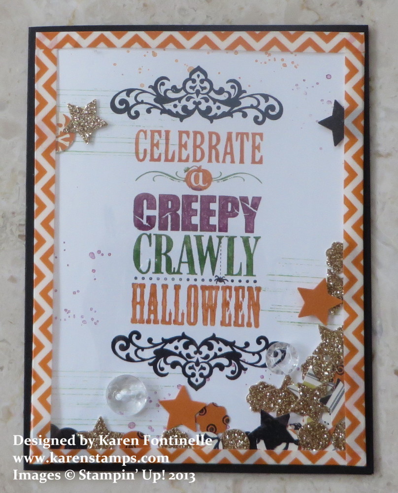 I thought this week I would post a new Halloween project everyday but then I went on vacation and did not have wifi!! Worse than that was that I thought I had a new plan that would give me wifi but it did not work! Don’t try to add a new technology on a day before you are leaving for vacation, especially without trying it out first! But now I do have wifi, so here is a Halloween card I LOVE! It’s been around on the internet and I certainly did not come up with the original idea.
