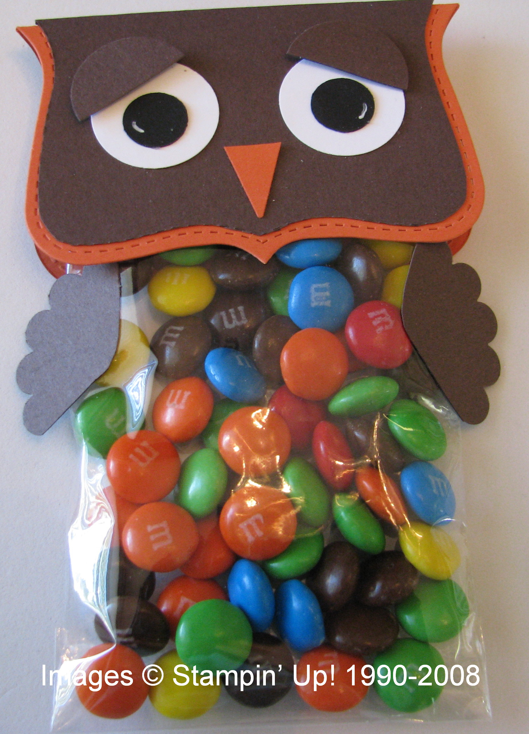 Like a lot of people recently, I have been excited about making Halloween cards and papercrafts, and that is how I first saw this idea….as a candy wrapper. The first one I made, after seeing a lot of them on the internet (where I spend way too much time, but I love all the ideas!) is for Halloween. I think the idea and directions I first saw came from another demo, Diana Gibbs. Here is my Halloween one: