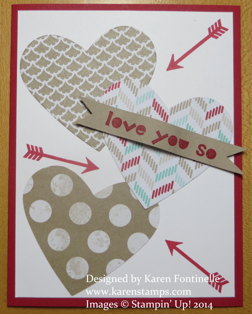Now this is the simple version of this card. You could “jazz it up” a bit more maybe with some bling: some Rhinestones or Candy Dots, maybe some extra punched small hearts scattered around. Card-making is easy when you start with Stampin’ Up! coordinating designer papers and card stock!