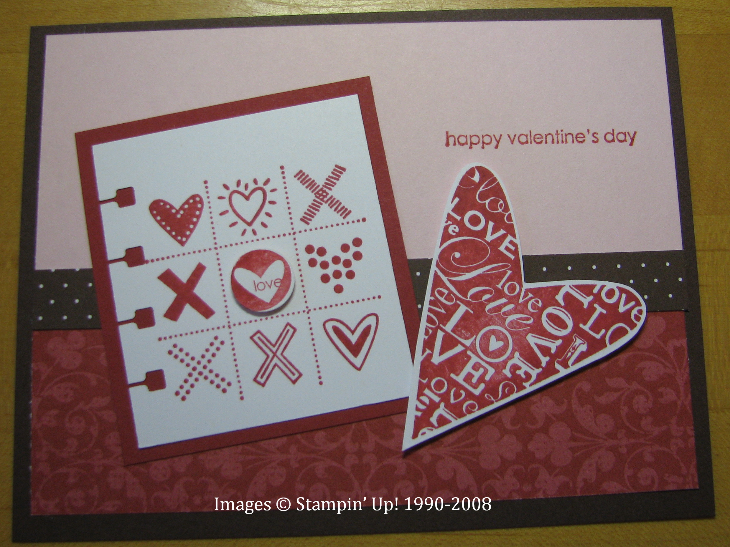 This one I stamped with a set in the Holiday Mini called "A Happy Heart". I also used the Spiral Punch on the side of the tic-tac-toe. The little heart in the middle square is popped up with a dimensional and so is the big heart. The designer paper is the fabulous Bella Rose.