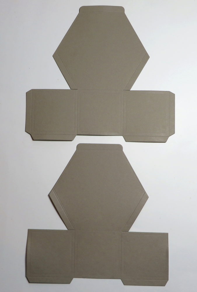 To make this hexagonal gift box, use the Big Shot and Window Box Thinlits Dies by Stampin’ Up! This set of dies is amazing! Besides the basic hexagonal box shape, it has pieces to decorate the to and sides of the box with decorative little cutouts! There are also other little pieces, one makes a tag and one makes those flag ends on a strip of paper.