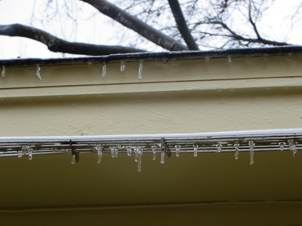 Icicles from the garage roof and the leaf guard on the gutter.