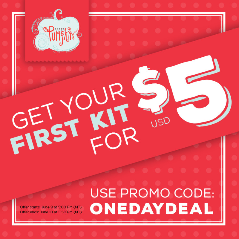 Have you ever said, “One day I’ll sign up for Paper Pumpkin.” Well, THAT DAY is today. For 31 hours, first-time subscribers can get their first kit for only $5 USD! This deal doesn’t last long so don’t delay and forget!