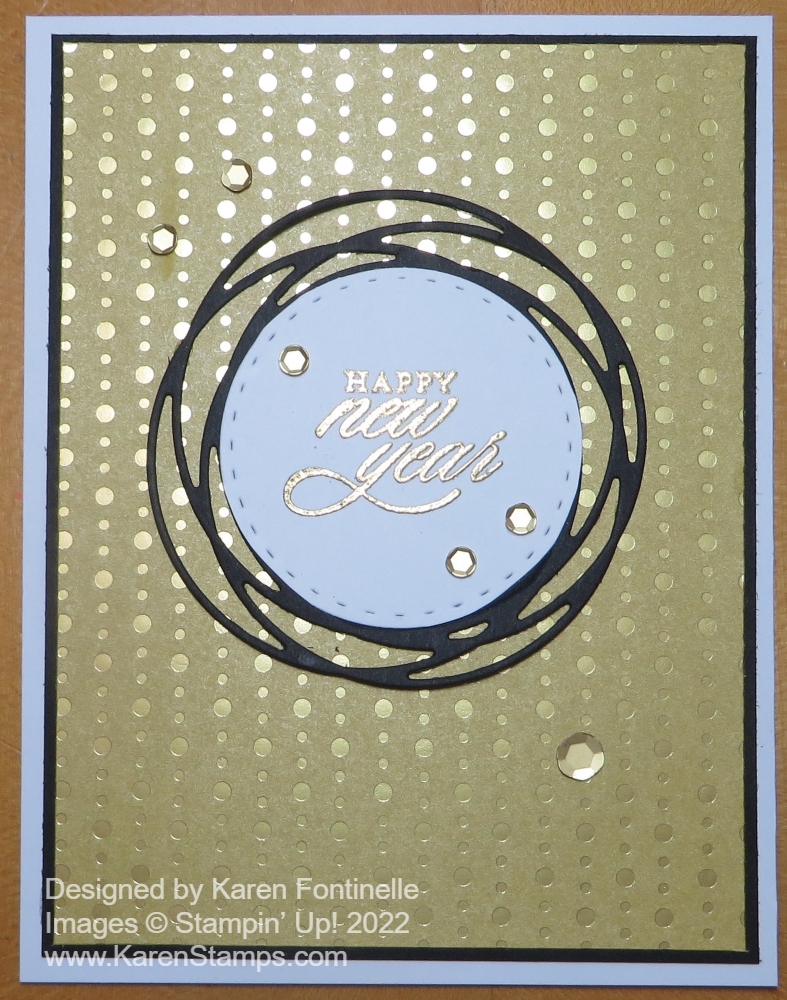 Happy New Year! Happy New Year’s Eve anyway! It’s time to make a card for New Year’s! I haven’t done any stamping since I finished my Christmas cards at the last minute with my kids home for a week or more. Also, most of my stamping stuff is moved into another room due to Christmas decorating so it’s not handy to be stamping right now. I hadn’t even played with my new Spring Mini and Sale-A-Bration things that I was able to preorder as a Demonstrator.