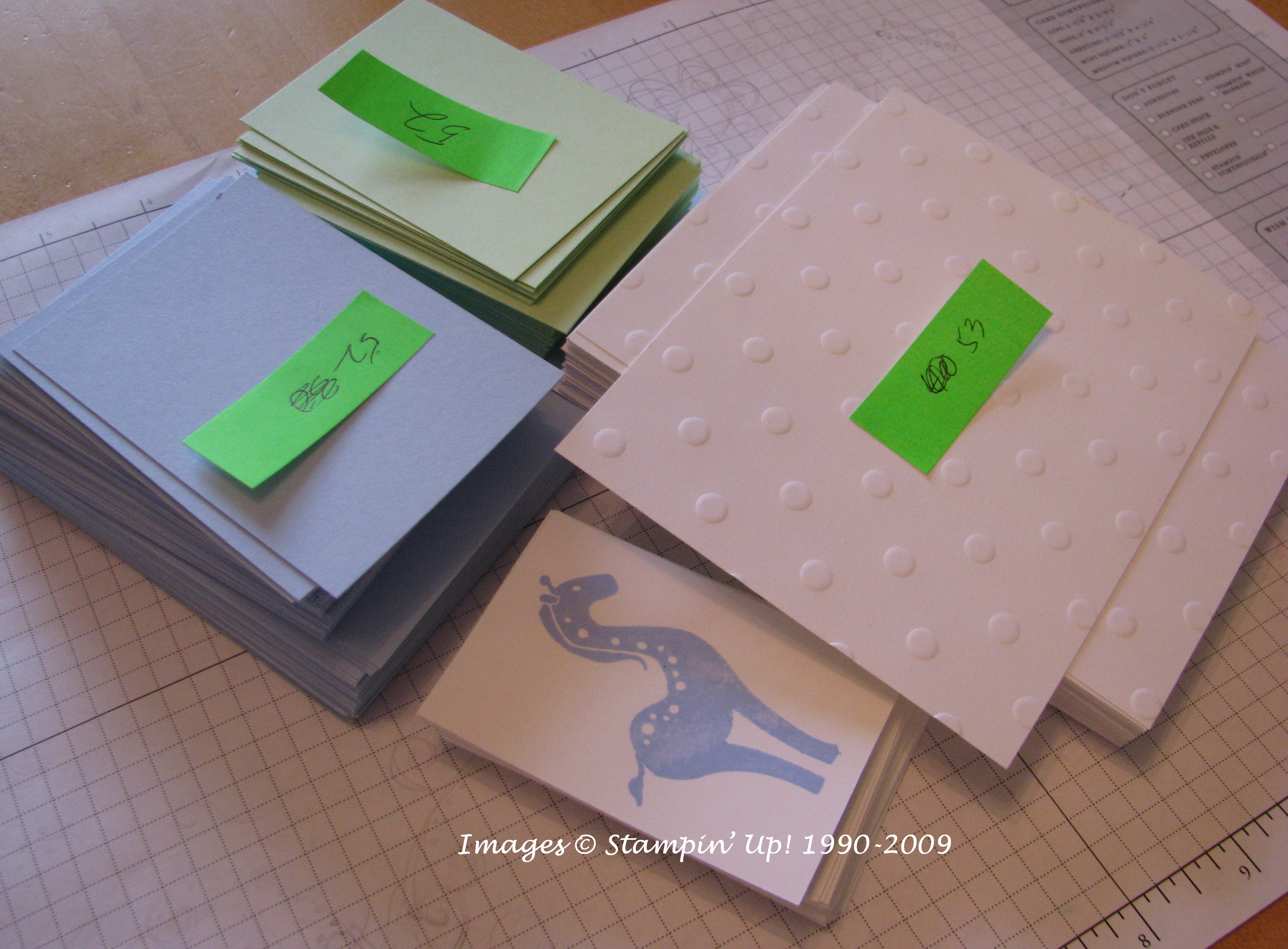 Finally cut out the paper for a swap card for Convention yesterday! And last night I used the Big Shot Texturz Plate to make the texture on the Whisper White cardstock and stamped the giraffe from the new set "Animal Stories". A week from today I will be on the plane to Salt Lake City to the great Stampin' Up! Convention! If you want to be going next year, you should consider signing up to be a demo, especially right now with the great sign up deal! Swapping is a big part of Convention…..usually we make just a card front and then trade with all the other demos! I'll make several different designs (hopefully, anyway!) so I don't get tired of making the same thing over and over. Sometimes I think bigger deals are being struck between demos and their swaps, especially the 3-D ones (like little gifts and things) than you find on the floor of the stock market! If you want to see what this card will look like, you should be following me on Twitter at www.twitter.com/karenstamps! Go to www.twitter.com to sign up!
