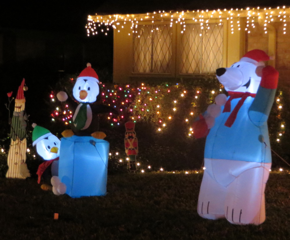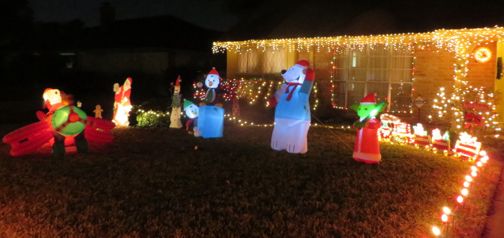 Probably no stamping today but here are my outdoor Christmas decorations! Last year we won Third Place in our neighborhood. This year I bought a couple new things….the Polar Bear and Penguins having a snowball fight and Yoda! Could NOT pass him up when I found him!