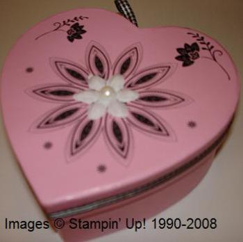 I used the Eastern Elegance Rub Ons and adhered some black gingham ribbon around the lid of the box. It still needed a little something so I stuck on a white flower from the Pretties Kit plus a half-pearl in the center. I found the rub ons to be fun and easy to use. You will want to try them also! See how many fun things you can find to apply them to around your house…or in your craft stash!