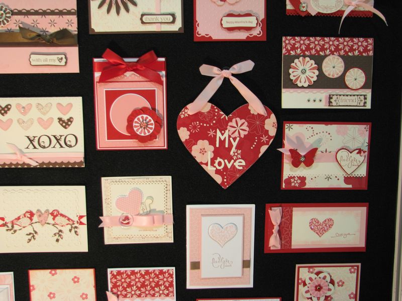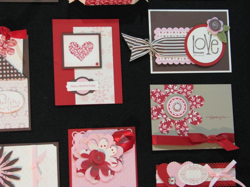 And here are a few more Valentine ideas for cards that I photographed at the Stampin' Up! Convention last summer in Salt Lake City. Stampin' Up! puts up row upon row of display boards of all kinds of stamping projects, and it is always a pretty popular area as you can imagine! It's best to find an off-time to photograph all these displays!