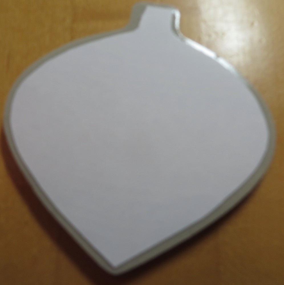 Here’s an ornament stamp with the sticker trimmed and applied, before the backing is removed. You can see the foam around the edge that will now be able to adhere to the block.
