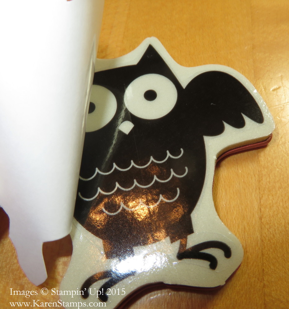 Is that extra work?? Yes! Can we all use a little mindless trimming with our Paper Snips while watching TV or just relaxing? Yes! You don’t have to be exact so that makes it pretty easy. Just go around the image in order to leave a little bit of a border. Some stamps might have more than others. Peel off the white paper covering the foam on the stamp. Then remove the split paper on the sticker itself and apply the sticker to the foam. Then remove the backing from the sticker so that you can see it.