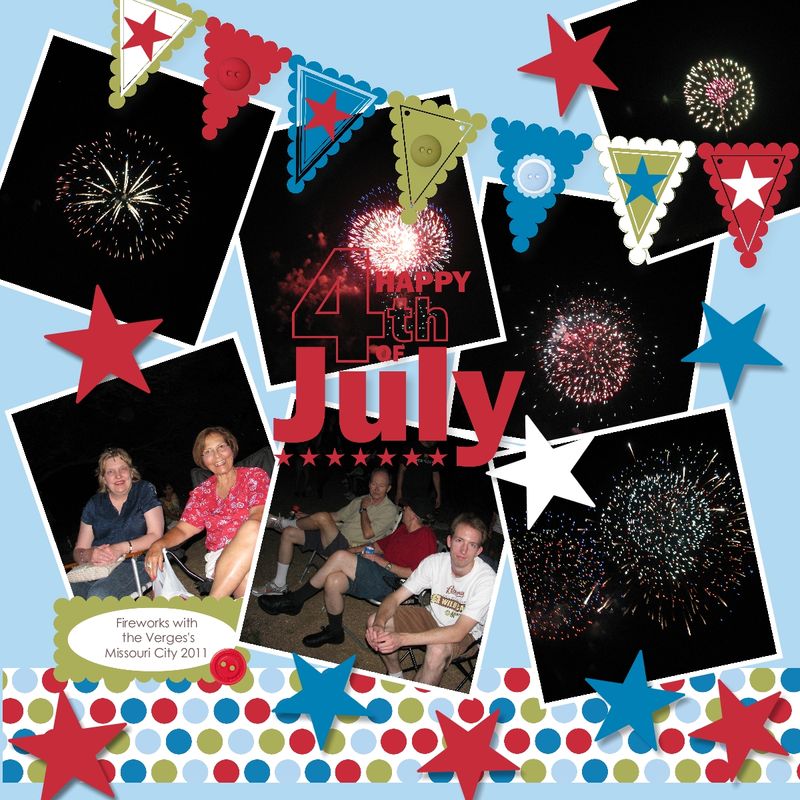 My Digital Studio makes it so easy to digitally scrapbook your recent photos! Here's my kind of crazy fireworks page from last night. The fireworks photos aren't taken with great photographic skills at all, just good enough to get the idea of fireworks in the sky! The consensus was that they weren't as good as past years at this location and the traffic getting out was way worse than usual…..but…it's all how about making memories with your friends and family!