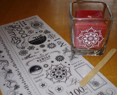 Su_rub_on_votive_glassjpg I finally just stopped everything today and decided to try using Stampin’ Up!’s new Rub Ons in the new Spring~Summer Collection 2008, our beautiful new catalog! I ventured into my closet of craft stuff and found this glass votive holder.  Rub ons are really great to use on glass, ceramic, and all sorts of things, not to mention cards and scrapbook pages.  This design came from the package called "Urban West".  In each package of rub ons, you receive one sheet of white and one of black.  It is recommended that you cut out the rub on you want to use, place it on whatever it is you are decorating, rub it down with your finger to make it stick in place, then use the included wooden stick to rub the rub on until it transfers.  Mine worked very easily and I was happy with how it turned out!  There are so many designs to use with each package of rub ons you are sure to find whatever it is you need for your project!  The only hard part is deciding which set of rub ons to buy!