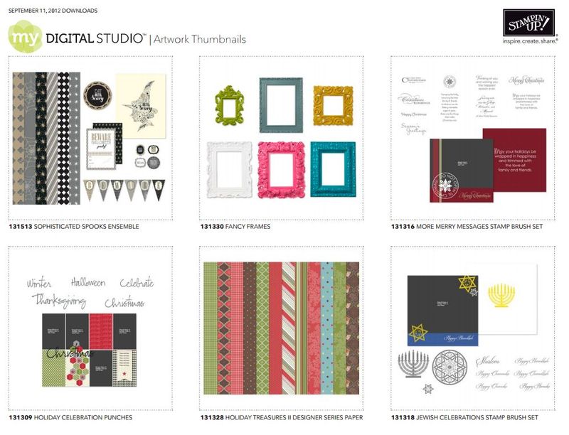 New downloads for My Digital Studio are released today! It's quite the assortment, with a whole Halloween Party Ensemble, a Jewish Celebrations stamp brush set, Christmas papers, punches and more; and Fancy Frames (they look like real picture frames!) Just think what projects you can make with these!