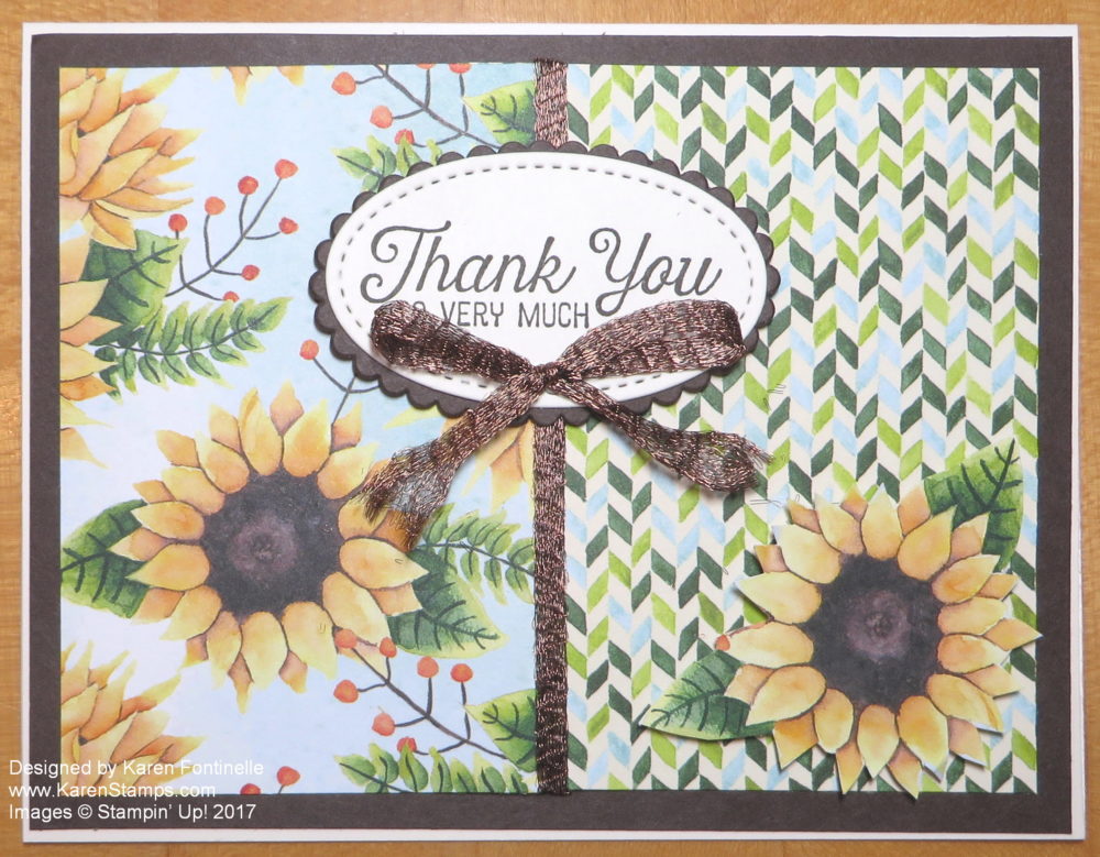 You can make a beautiful fall card so easily with the Painted Autumn Designer Series Paper in the Stampin’ Up! Holiday Catalog! I had been doing a lot of stamping with the flower stamps in the Painted Harvest Stamp Set, but there is this sheet of paper printed with sunflowers in the Painted Autumn paper package that I decided to use instead of stamping.