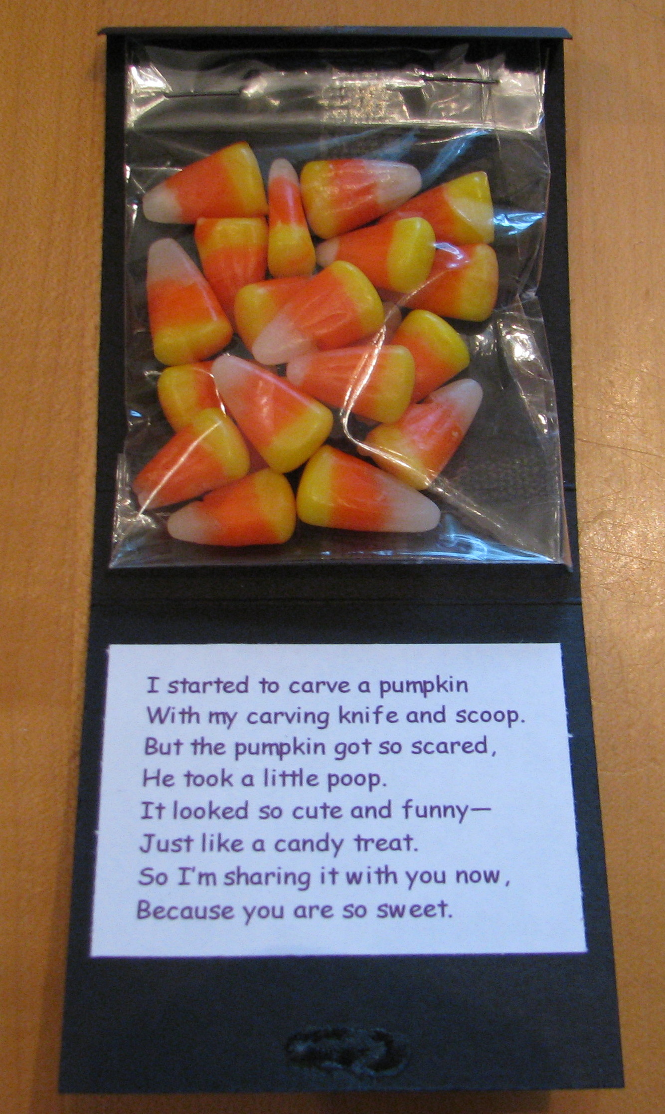 Normally I don't go too much for the little "poop" treats that you often see around holiday time, but this Halloween one going around on many stamping sites kind of caught my eye. Some were made into little boxes, but I made mine just kind of a foldover thing. You can see it from the side in the second photo.