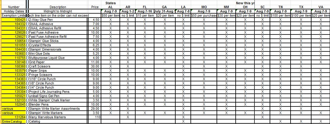 Here’s a specific chart of which Stampin’ Up! items apply in each state. You’ll have to click to enlarge.