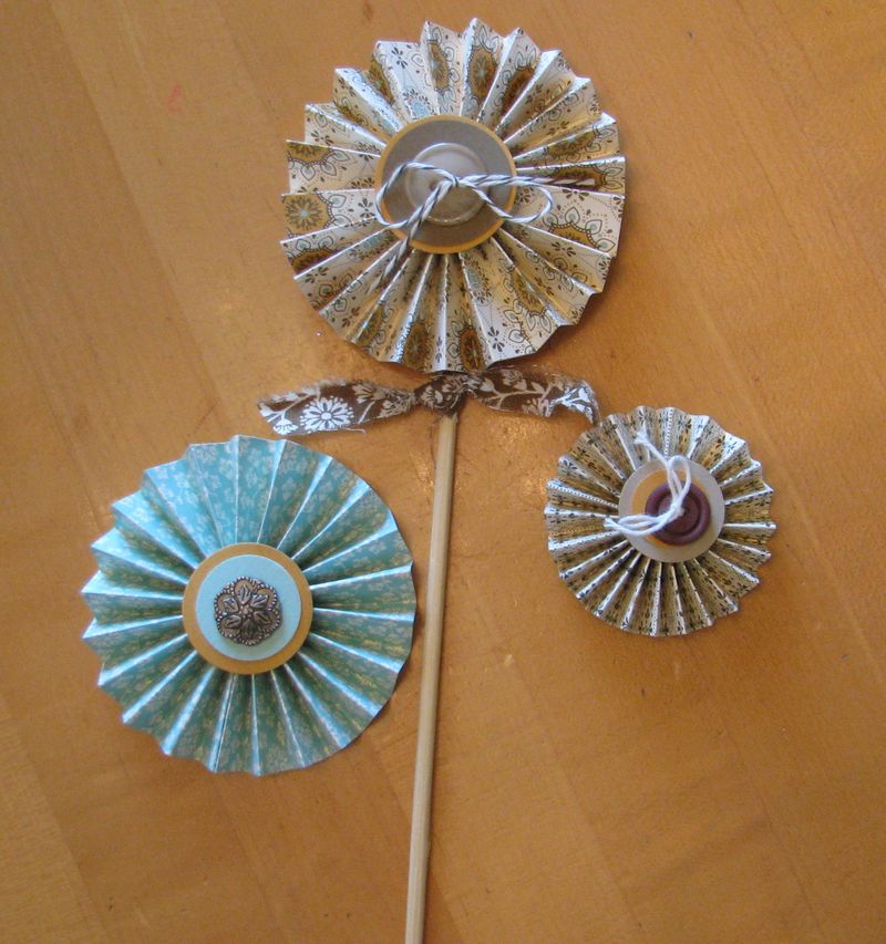 Paper flowers have been "in style" for awhile now, but now with the new Stampin' Up! Simply Scored scoring tool this accordion-folded style is so easy to make! It's another one of those "bet you can't make just one" things! Here are some of my most recent paper flowers, often called lollies!