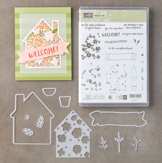 Here’s a Stampin’ Up! video you will enjoy about the Home Life Stamp Set and Welcome Home Framelits Dies with Donna Griffith from the Stampin’ Up! Home Office. Not only does she talk about the stamp set and dies, but she gives lots of good tips for using this set.