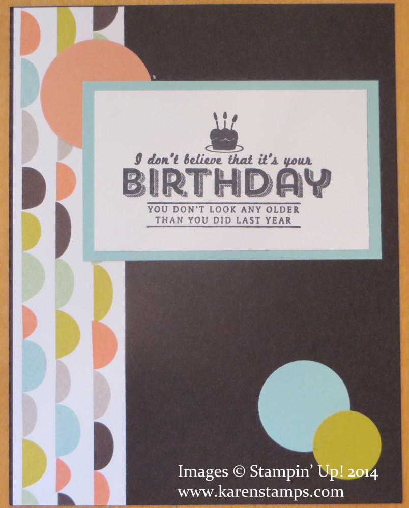 Here’s the See Ya Later greeting stamp set again along with Sweet Sorbet Designer Series Paper, plus three punched circles. Could card-making get any easier?!