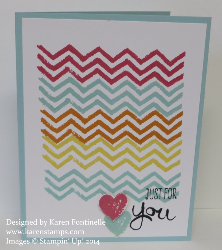 This card is stamped with the Work of Art Stamp Set and will be available in the NEW STAMPIN’ UP! CATALOG later today!!! You have to sit on your hands all morning, but at Noon Stampin’ Up! Time (Mountain Time) (1:00 pm Central Time) the catalog should go live! Keep your fingers crossed that all goes smoothly with technology today as thousands of Stampin’ Up! Demonstrators and customers want to get online and place their first orders as quickly as possible! Those internet wires are going to be humming and soon the UPS truck wheels will be rolling delivering those much anticipated Stampn’ Up! boxes!!
