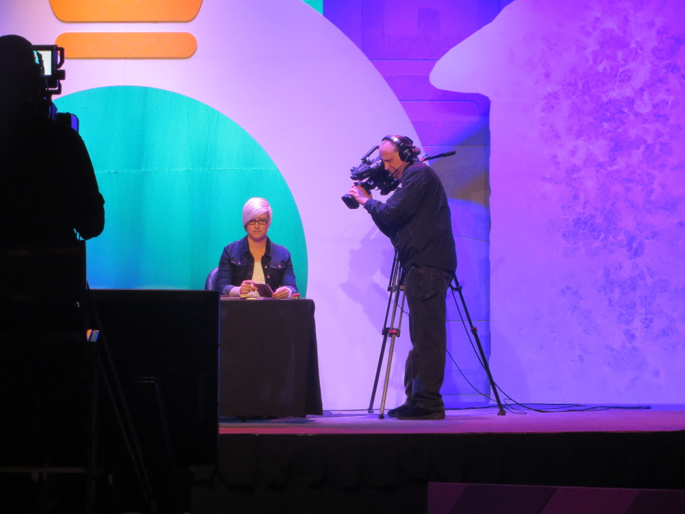 Shelli’s daughter, Sara Douglass, is full of personality like her mother and always does a fun presentation on stage! That’s Tom the cameraman who films everything for the big screens.