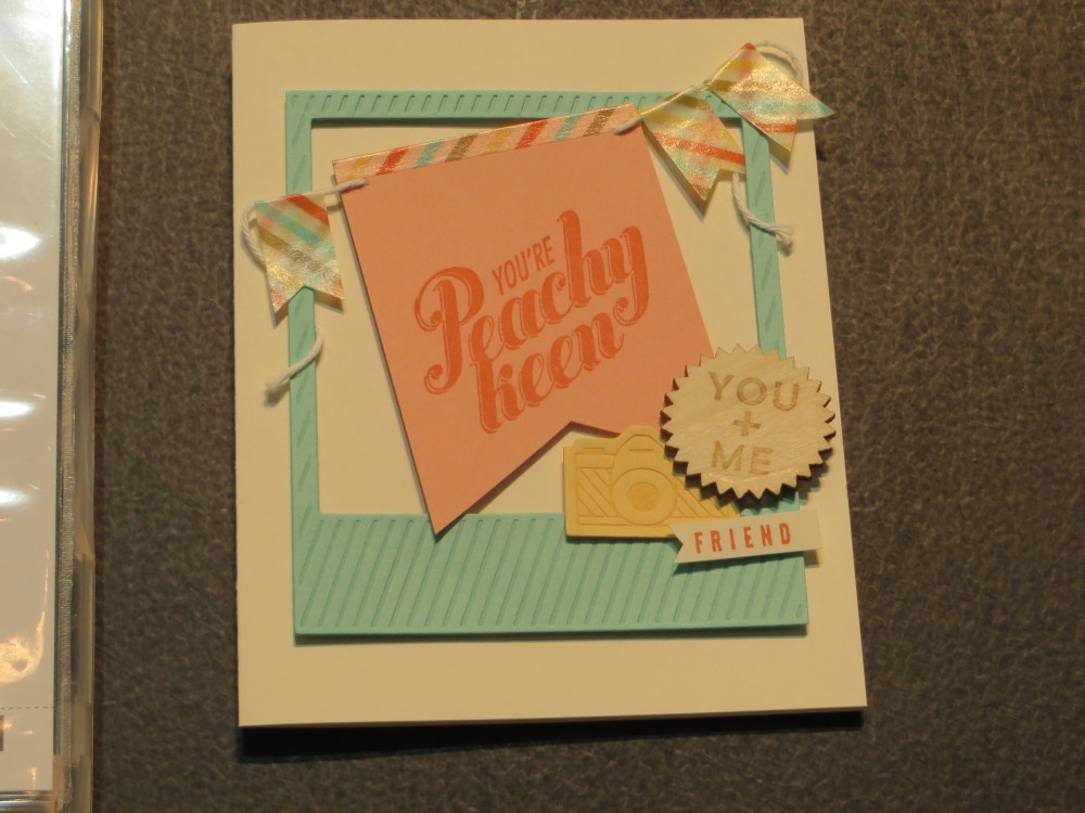 Sara also showed us a new photopolymer stamp set on a card. Stampin’ Up! will start manufacturing their own photopolymer stamps and packaging them in a case like the clear-mount stamps.
