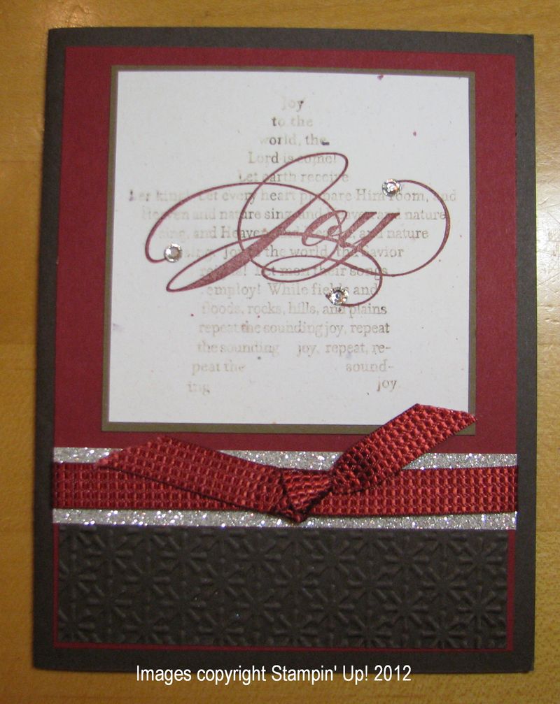 And today I received a card from a cousin of my mother's, and again, I thought, "This feels like a Stampin' Up! envelope!" Well, sure enough, there was a Stampin' Up! card inside, stamped by someone named "Judy" on the back. She didn't comment in her note how she got the card…maybe it was stamped by a daughter-in-law or grand-daughter or just some other stamper. But what a surprise to receive a Stampin' Up! card from this lady!