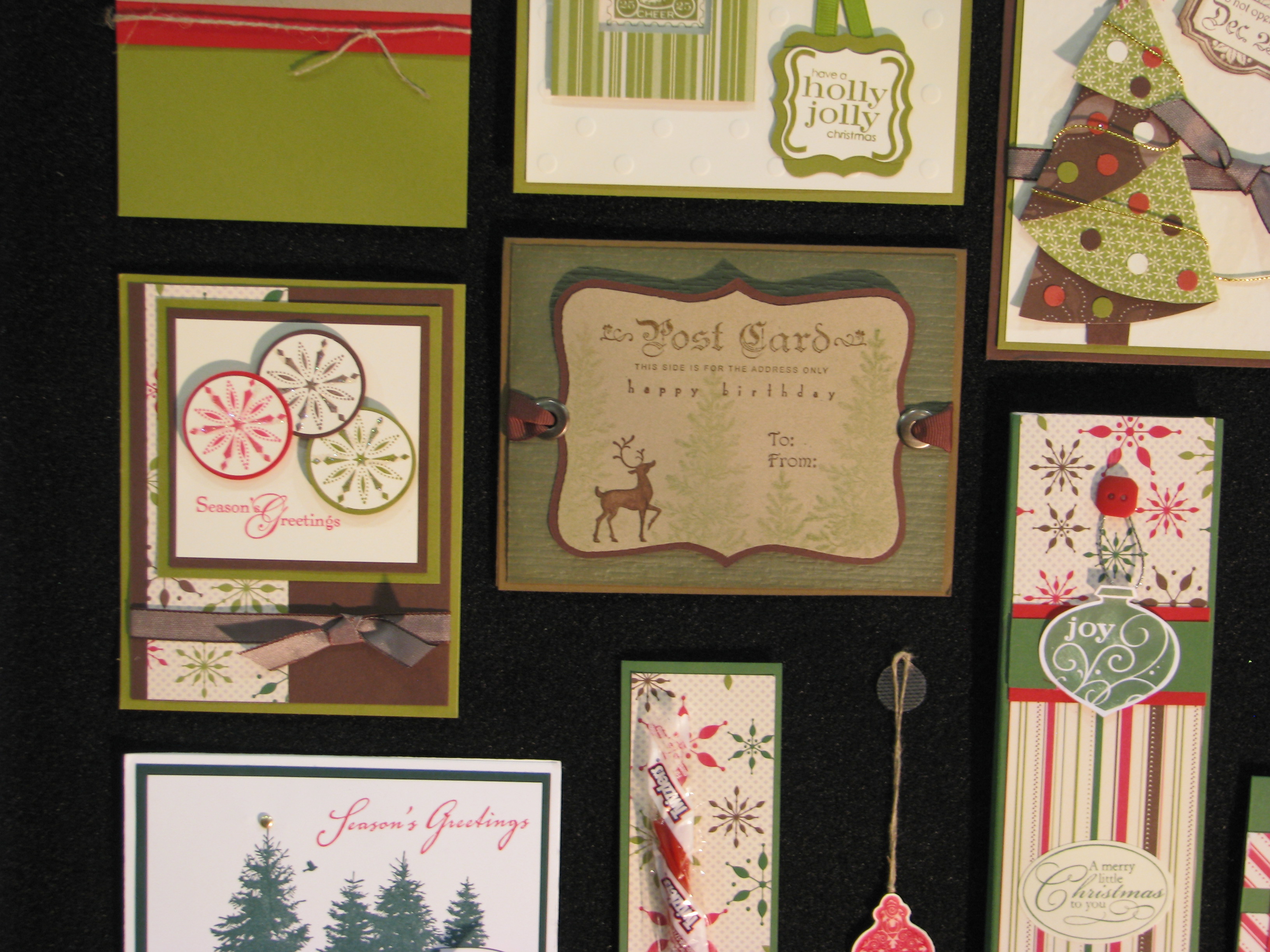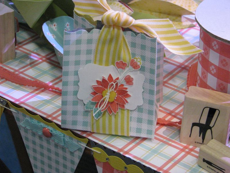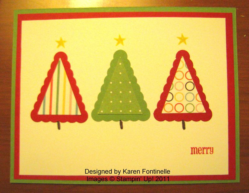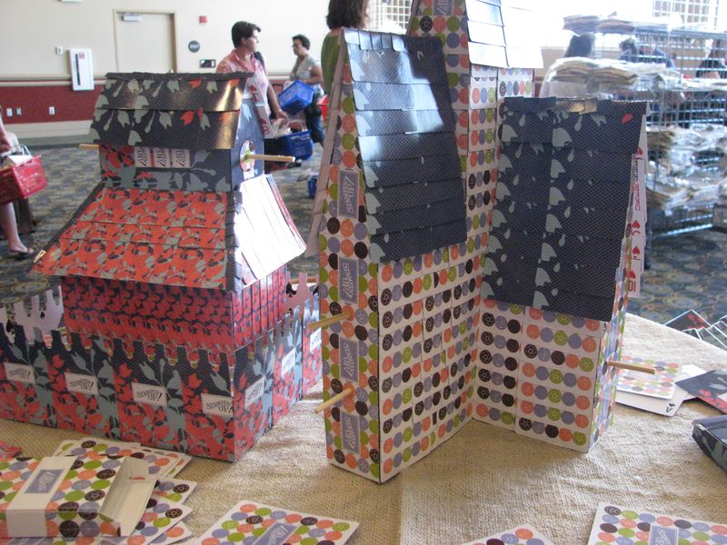 Now that the Stampin’ Up! Convention is less than two weeks away, it’s probably time to get serious about making swaps! Swaps are card fronts that we Stampin’ Up! Demonstrators make to trade with each other. Not only does this give us a collection of ideas to show our customers, it also gives us a way to interact with each other! It usually even starts at the airport if others can identify you as a Stampin’ Up! Demo and we start asking each other if we want to swap. Of course everyone does, unless they are going to be finishing their swaps on the airplane ride to Salt Lake City! Swapping is one of the biggest things at any Stampin’ Up! event. It is AMAZING (to quote a phrase from the Bachelor/Bachelorette shows!) to look around at Convention in the lobby, inside the main stage area, even outside the building to see all these people swapping! You really have to see it for yourself! Even at lunch or during a break, people will have their swaps all laid out on the table and as other demos walk by they can see what swaps they have and trade if they want. I swear, Wall Street has nothing on these ladies and gents! Everywhere there is a line people are swapping while they wait! It’s a great way to break the ice and start talking to those strangers around you!